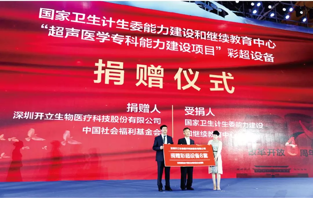 作為民族超聲產(chǎn)業(yè)的代表企業(yè),開(kāi)立醫(yī)療通過(guò)中國(guó)社會(huì)福利基金會(huì)向國(guó)家衛(wèi)計(jì)委能力建設(shè)和繼續(xù)教育中心“超聲醫(yī)學(xué)專科建設(shè)項(xiàng)目”捐贈(zèng)8套彩色多普勒超聲診斷系統(tǒng),用于支持貧困地區(qū)基層超聲醫(yī)學(xué)的??颇芰ㄔO(shè)。國(guó)家衛(wèi)生計(jì)生委能力建設(shè)和繼續(xù)教育中心主任楊愛(ài)平先生、中國(guó)社會(huì)福利基金會(huì)秘書(shū)長(zhǎng)蔡君翼女士、開(kāi)立醫(yī)療超聲銷售總監(jiān)王宏偉先生共同出席了彩超捐贈(zèng)儀式。