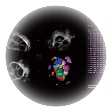 卵泡結(jié)構(gòu)的自動(dòng)識(shí)別和測(cè)量,可顯示多組測(cè)量數(shù)據(jù)。
